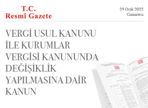 VERGİ USUL KANUNU İLE KURUMLAR VERGİSİ KANUNUNDA DEĞİŞİKLİK YAPILMASINA DAİR KANUN (29 Ocak 2022 tarihli ve 31734 sayılı Resmi Gazete’ de yayımlanmıştır) Kanun