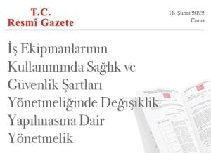 Çalışma ve Sosyal Güvenlik Bakanlığından: İŞ EKİPMANLARININ KULLANIMINDA SAĞLIK VE GÜVENLİK ŞARTLARI YÖNETMELİĞİNDE DEĞİŞİKLİK YAPILMASINA DAİR YÖNETMELİK (18 Şubat 2022 tarihli ve 31754 sayılı Resmi