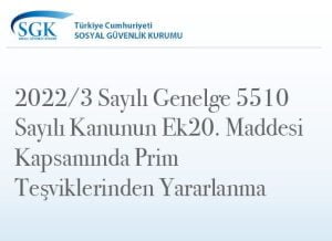 T.C. SOSYAL GÜVENLİK KURUMU BAŞKANLIĞI Sigorta Primleri Genel Müdürlüğü Tarih : 11.02.2022 Sayı : E-41481264-207.02-40075736 Konu : 5510 sayılı Kanunun Ek 20. Maddesi Kapsamında Prim Teşviklerinden Yararlanma GENELGE 2022 / 3