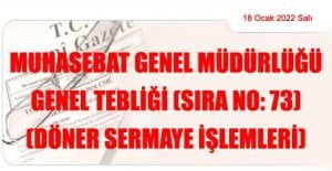 Hazine ve Maliye Bakanlığından: MUHASEBAT GENEL MÜDÜRLÜĞÜ GENEL TEBLİĞİ (SIRA NO: 73) (DÖNER SERMAYE İŞLEMLERİ) (18 Ocak 2022 tarihli ve 31723 sayılı Resmi Gazete’