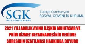 T.C. SOSYAL GÜVENLİK KURUMU BAŞKANLIĞI (25 Ocak 2022 tarihinde SGK tarafından yayımlanmıştır) DUYURU 2021 Yılı Aralık Ayına İlişkin Muhtasar ve Prim Hizmet