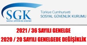 T.C. SOSYAL GÜVENLİK KURUMU BAŞKANLIĞI Sigorta Primleri Genel Müdürlüğü Tarih : 21.10.2021 Sayı : E-24010506-010.06.01-33782544 Konu : 2020/20 Sayılı Genelgede Değişiklik Yapılması GENELGE 2021 / 36
