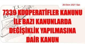 KOOPERATİFLER KANUNU İLE BAZI KANUNLARDA DEĞİŞİKLİK YAPILMASINA DAİR KANUN (26 Ekim 2021 tarihli ve 31640 sayılı Resmi Gazete’ de yayımlanmıştır) Kanun No. 7339