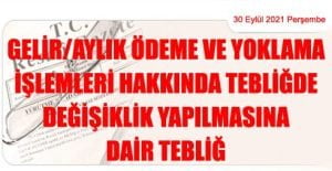 Sosyal Güvenlik Kurumu Başkanlığından: GELİR/AYLIK ÖDEME VE YOKLAMA İŞLEMLERİ HAKKINDA TEBLİĞDE DEĞİŞİKLİK YAPILMASINA DAİR TEBLİĞ (30 Eylül 2021 tarihli ve 31614 sayılı Resmi Gazete’