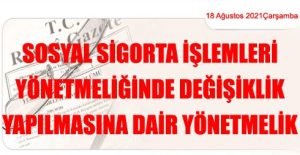 Sosyal Güvenlik Kurumundan: SOSYAL SİGORTA İŞLEMLERİ YÖNETMELİĞİNDE DEĞİŞİKLİK YAPILMASINA DAİR YÖNETMELİK (18 Ağustos 2021 Tarihli ve 31572 Sayılı Resmi Gazete’ de Yayımlanmıştır) MADDE