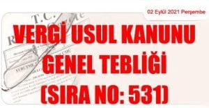Hazine ve Maliye Bakanlığı (Gelir İdaresi Başkanlığı)’ndan: VERGİ USUL KANUNU GENEL TEBLİĞİ (SIRA NO: 531) (02 Eylül 2021 Tarihli ve 31586 Sayılı Resmi Gazete’
