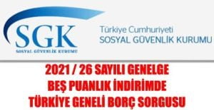 T.C. SOSYAL GÜVENLİK KURUMU BAŞKANLIĞI Sigorta Primleri Genel Müdürlüğü Tarih : 19.07.2021 Sayı : E-41481264-207.02-28180074 Konu : Beş Puanlık İndirimde Türkiye Geneli Borç Sorgusu GENELGE 2021