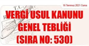 Hazine ve Maliye Bakanlığı (Gelir İdaresi Başkanlığı)’ndan: VERGİ USUL KANUNU GENEL TEBLİĞİ (SIRA NO: 530) (16 Temmuz 2021 Tarihli ve 31543 Sayılı Resmi Gazete’