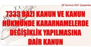BAZI KANUN VE KANUN HÜKMÜNDE KARARNAMELERDE DEĞİŞİKLİK YAPILMASINA DAİR KANUN Kanun No. 7333 Kabul