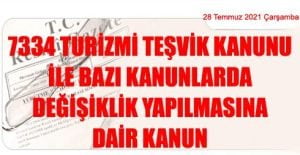 TURİZMİ TEŞVİK KANUNU İLE BAZI KANUNLARDA DEĞİŞİKLİK YAPILMASINA DAİR KANUN Kanun No. 7334 Kabul Tarihi: 18/7/2021 (28 Temmuz 2021 Tarihli ve 31551 Sayılı Resmi
