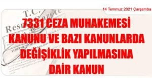 CEZA MUHAKEMESİ KANUNU VE BAZI KANUNLARDA DEĞİŞİKLİK YAPILMASINA DAİR KANUN (14 Temmuz 2021 Tarihli ve 31541 Sayılı Resmi Gazete’ de Yayımlanmıştır) Kanun No.