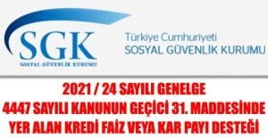 2021 / 24 Sayılı Genelge – 4447 Sayılı Kanunun Geçici 31. Maddesinde Yer Alan Kredi Faiz Veya Kar Payı Desteği