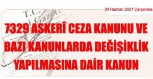 ASKERÎ CEZA KANUNU VE BAZI KANUNLARDA DEĞİŞİKLİK YAPILMASINA DAİR KANUN (30 Haziran 2021 Tarihli ve 31527 Sayılı Resmi Gazete’ de Yayımlanmıştır) Kanun No.