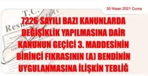 Ticaret Bakanlığından: 7226 SAYILI BAZI KANUNLARDA DEĞİŞİKLİK YAPILMASINA DAİR KANUNUN GEÇİCİ 3. MADDESİNİN BİRİNCİ FIKRASININ (A) BENDİNİN UYGULANMASINA İLİŞKİN TEBLİĞ