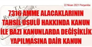 AMME ALACAKLARININ TAHSİL USULÜ HAKKINDA KANUN İLE BAZI KANUNLARDA DEĞİŞİKLİK YAPILMASINA DAİR KANUN (22 Nisan 2021 Tarihli ve 31462 Sayılı Resmi Gazete’ de Yayımlanmıştır)