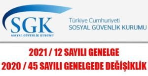 2021 / 12 Sayılı Genelge – 2020/45 Sayılı Genelgede Değişiklik