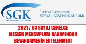 T.C. SOSYAL GÜVENLİK KURUMU BAŞKANLIĞI Sigorta Primleri Genel Müdürlüğü Tarih : 11.02.2021 Sayı : E-24010506-010.06.02-20190795 Konu : Meslek Mensupları Bakımından Beyannamenin Ertelenmesi GENELGE 2021 / 3