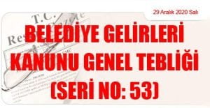 Hazine ve Maliye Bakanlığı (Gelir İdaresi Başkanlığı)’ndan: BELEDİYE GELİRLERİ KANUNU GENEL TEBLİĞİ (SERİ NO: 53) (29 Aralık 2020 Tarihli ve 31349 – 1.Mükerrer Sayılı
