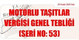 Hazine ve Maliye Bakanlığı (Gelir İdaresi Başkanlığı)’ndan: MOTORLU TAŞITLAR VERGİSİ GENEL TEBLİĞİ (SERİ NO: 53) (29 Aralık 2020 Tarihli ve 31349 – 1.Mükerrer Sayılı