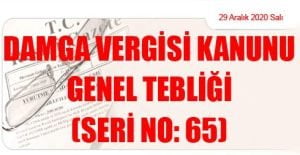 Hazine ve Maliye Bakanlığı (Gelir İdaresi Başkanlığı)’ndan: DAMGA VERGİSİ KANUNU GENEL TEBLİĞİ (SERİ NO: 65) (29 Aralık 2020 Tarihli ve 31349 – 1.Mükerrer Sayılı