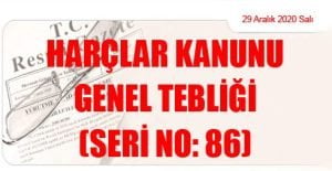 Hazine ve Maliye Bakanlığı (Gelir İdaresi Başkanlığı)’ndan: HARÇLAR KANUNU GENEL TEBLİĞİ (SERİ NO: 86) (29 Aralık 2020 Tarihli ve 31349 – 1.Mükerrer Sayılı Resmi