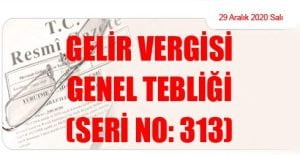 Hazine ve Maliye Bakanlığı (Gelir İdaresi Başkanlığı)’ndan: GELİR VERGİSİ GENEL TEBLİĞİ (SERİ NO: 313) (29 Aralık 2020 Tarihli ve 31349 – 1.Mükerrer Sayılı Resmi