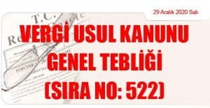 Hazine ve Maliye Bakanlığı (Gelir İdaresi Başkanlığı)’ndan: VERGİ USUL KANUNU GENEL TEBLİĞİ (SIRA NO: 522) (29 Aralık 2020 Tarihli ve 31349 – 1.Mükerrer Sayılı