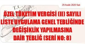 Hazine ve Maliye Bakanlığı (Gelir İdaresi Başkanlığı)’ndan: ÖZEL TÜKETİM VERGİSİ (II) SAYILI LİSTE UYGULAMA GENEL TEBLİĞİNDE DEĞİŞİKLİK YAPILMASINA DAİR TEBLİĞ (SERİ NO: 8) (29
