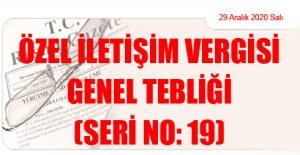Hazine ve Maliye Bakanlığı (Gelir İdaresi Başkanlığı)’ndan: ÖZEL İLETİŞİM VERGİSİ GENEL TEBLİĞİ (SERİ NO: 19) (29 Aralık 2020 Tarihli ve 31349 – 1.Mükerrer Sayılı