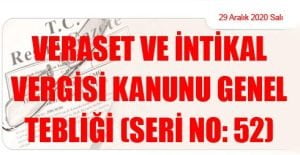 Hazine ve Maliye Bakanlığı (Gelir İdaresi Başkanlığı)’ndan: VERASET VE İNTİKAL VERGİSİ KANUNU GENEL TEBLİĞİ (SERİ NO: 52) (29 Aralık 2020 Tarihli ve 31349 –