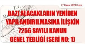 Hazine ve Maliye Bakanlığı (Gelir İdaresi Başkanlığından: BAZI ALACAKLARIN YENİDEN YAPILANDIRILMASINA İLİŞKİN 7256 SAYILI KANUN GENEL TEBLİĞİ (SERİ NO: 1) (27.11.2020 tarih ve 31317
