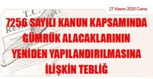 Ticaret Bakanlığından: 7256 SAYILI KANUN KAPSAMINDA GÜMRÜK ALACAKLARININ YENİDEN YAPILANDIRILMASINA İLİŞKİN TEBLİĞ (27 Kasım 2020 Tarihli ve 31317 Sayılı Resmi Gazete’ de Yayımlanmıştır)