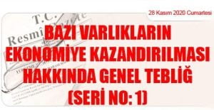Hazine ve Maliye Bakanlığı (Gelir İdaresi Başkanlığı)’ndan: BAZI VARLIKLARIN EKONOMİYE KAZANDIRILMASI HAKKINDA GENEL TEBLİĞ (SERİ NO: 1) (28 Kasım 2020 Tarihli ve 31318 Sayılı