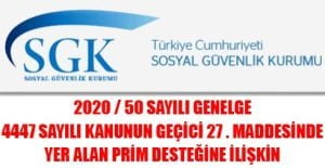 2020 / 50 Sayılı Genelge – 4447 Sayılı Kanunun Geçici 27. Maddesinde Yer Alan Prim Desteğine İlişkin