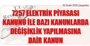 ELEKTRİK PİYASASI KANUNU İLE BAZI KANUNLARDA DEĞİŞİKLİK YAPILMASINA DAİR KANUN (02 Aralık 2020 Tarihli ve 31322 Sayılı Resmi Gazete’ de Yayımlanmıştır) Kanun No.