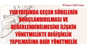 Aile, Çalışma ve Sosyal Hizmetler Bakanlığından: YURTDIŞINDA GEÇEN SÜRELERİN BORÇLANDIRILMASI VE DEĞERLENDİRİLMESİNE İLİŞKİN YÖNETMELİKTE DEĞİŞİKLİK YAPILMASINA DAİR YÖNETMELİK (06 Kasım 2020 Tarihli ve 31296