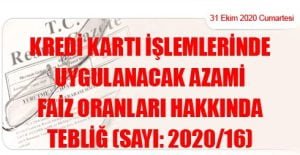 Kredi Kartı İşlemlerinde Uygulanacak Azami Faiz Oranları Hakkında Tebliğ (Sayı: 2020/16)