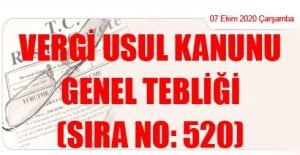 Hazine ve Maliye Bakanlığı (Gelir İdaresi Başkanlığı)’ndan: VERGİ USUL KANUNU GENEL TEBLİĞİ (SIRA NO: 520) (07 Ekim 2020 Tarihli ve 31267 Sayılı Resmi Gazete’