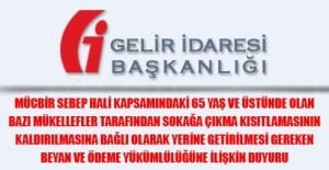 Mücbir Sebep Hali Kapsamındaki 65 Yaş ve Üstünde Olan Bazı Mükellefler Tarafından Sokağa Çıkma Kısıtlamasının Kaldırılmasına Bağlı Olarak Yerine Getirilmesi Gereken Beyan ve Ödeme Yükümlülüğüne İlişkin Duyuru