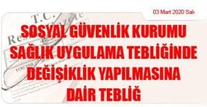 (16 Haziran 2020 Tarihli ve 31157 – 1.Mükerrer Sayılı Resmi Gazete’ de Yayımlanmıştır) Sosyal Güvenlik Kurumu Sağlık Uygulama Tebliğinde Değişiklik Yapılmasına