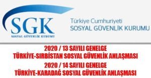 (11 Mayıs 2020 Tarihinde SGK Tarafından Yayımlanmıştır) 2020/14 Sayılı Genelge – Türkiye-Karadağ Sosyal Güvenlik Anlaşması 2020/13 Sayılı Genelge – Türkiye-Sırbistan Sosyal Güvenlik