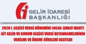 T.C. HAZİNE VE MALİYE BAKANLIĞI Gelir İdaresi Başkanlığı VERGİ USUL KANUNU SİRKÜLERİ / 130 Konusu: 18 Mayıs 2020 günü sonuna kadar verilmesi gereken 2020