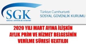 T.C. SOSYAL GÜVENLİK KURUMU BAŞKANLIĞI DUYURU (21 Nisan 2020 tarihinde SGK tarafından yayımlanmıştır) 2020 YILI MART AYINA İLİŞKİN AYLIK PRİM VE HİZMET BELGESİNİN