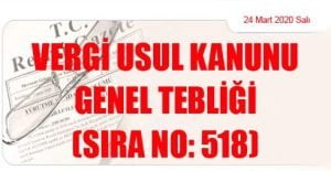 Hazine ve Maliye Bakanlığı (Gelir İdaresi Başkanlığı)’ndan: VERGİ USUL KANUNU GENEL TEBLİĞİ (SIRA NO: 518) (24 Mart 2020 Tarihli ve 31078 – 1.Mükerrer Sayılı