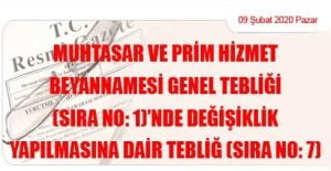 Hazine ve Maliye Bakanlığı (Gelir İdaresi Başkanlığı)’ndan: MUHTASAR VE PRİM HİZMET BEYANNAMESİ GENEL TEBLİĞİ (SIRA NO: 1)’NDE DEĞİŞİKLİK YAPILMASINA DAİR TEBLİĞ (SIRA NO: 7)