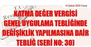 Hazine ve Maliye Bakanlığı (Gelir İdaresi Başkanlığı)’ndan: KATMA DEĞER VERGİSİ GENEL UYGULAMA TEBLİĞİNDE DEĞİŞİKLİK YAPILMASINA DAİR TEBLİĞ (SERİ NO: 30) (14 Şubat 2020 Tarihli
