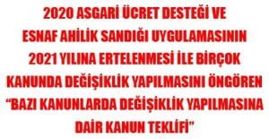 (17 Şubat 2020 tarihinde TBMM tarafından yayımlanmıştır) TÜRKİYE BÜYÜK MİLLET MECLİSİ BAŞKANLIĞINA Bazı Kanunlarda Değişiklik Yapılmasına Dair Kanun Teklifimiz ve gerekçesi ekte sunulmaktadır.
