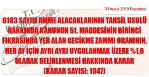 6183 Sayılı Amme Alacaklarının Tahsil Usulü Hakkında Kanunun 51. Mad. Birinci Fıkrasında Yer Alan Gecikme Zammı Oranının, Her Ay İçin Ayrı Ayrı Uygulanmak Üzere %1,6 Olarak Bel. Karar Sayısı:1947