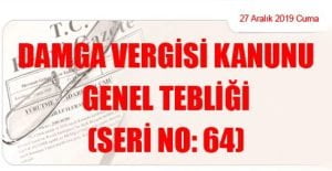 Hazine ve Maliye Bakanlığı (Gelir İdaresi Başkanlığı)’ndan: DAMGA VERGİSİ KANUNU GENEL TEBLİĞİ (SERİ NO: 64) (27 Aralık 2019 Tarihli ve 30991 – 2.Mükerrer Sayılı