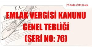 Hazine ve Maliye Bakanlığı (Gelir İdaresi Başkanlığı)’ndan: EMLAK VERGİSİ KANUNU GENEL TEBLİĞİ (SERİ NO: 76) (27 Aralık 2019 Tarihli ve 30991 – 2.Mükerrer Sayılı